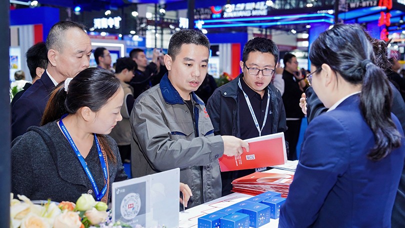河南ks凯时总裁冯军(左一)为参展嘉宾介绍ks凯时概况